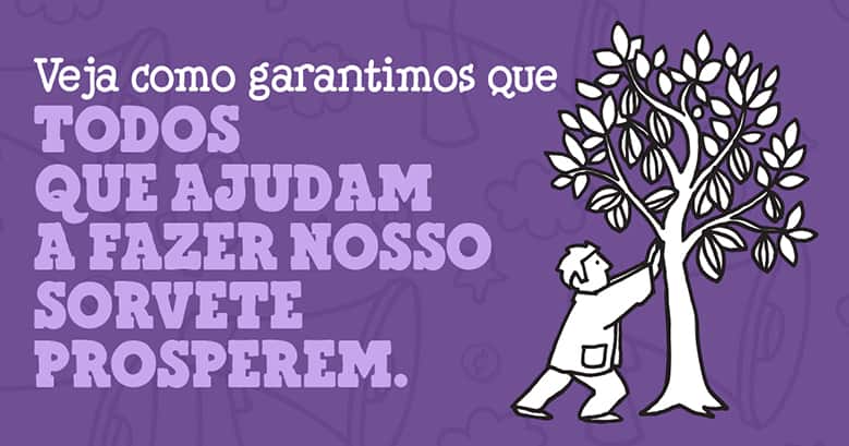 Como podemos ter certeza de que, à medida que prosperamos, todos que participam do preparo de nossos sorvetes prosperem também? Usamos nosso modelo de negócios inovador, chamado prosperidade linkada, que trabalha para garantir que, desde os pequenos agricultores que cultivam nosso cacau até os trabalhadores do campo que ordenham as vacas, todos recebam sua parte justa.